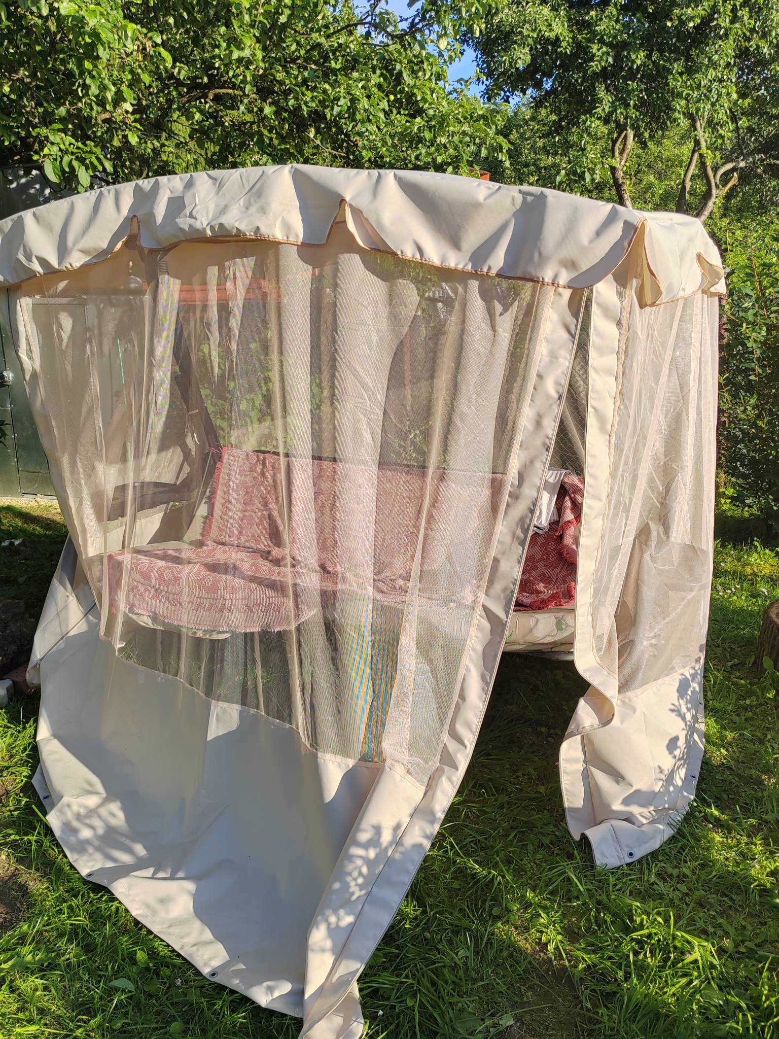 Особенности тентов для садовых качелей