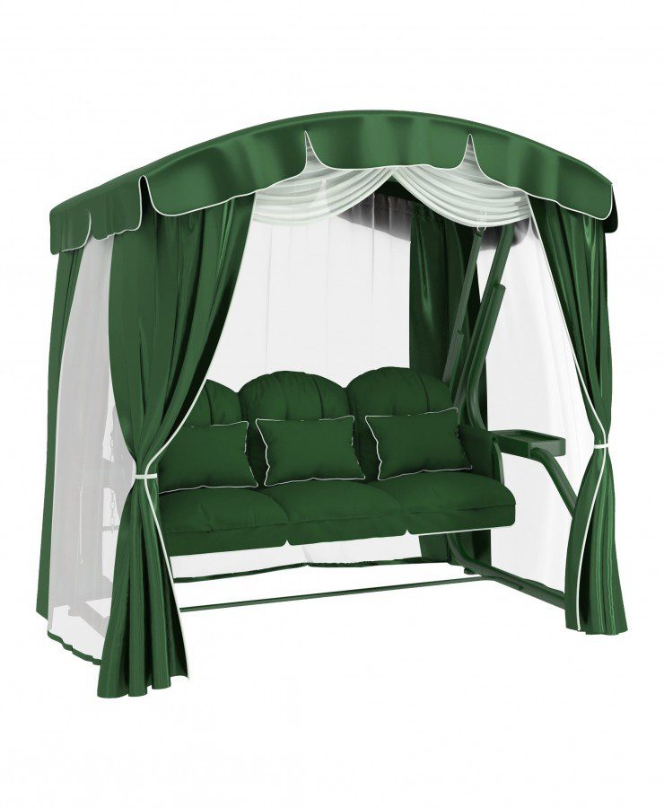 У нас вы можете купить комплект для садовых качелей Leset Пион. В данный комплект входит тент и москитная сетка, выполненная в приятном зелёном цвете. Комплект подойдёт для размеров качелей 245 х 150 х 185 см, предназначен комплект для того, чтобы сделать ваш отдых на свежем воздухе комфортнее и приятнее, а также защитить вас от ветра, солнца, дождя, а других неблагоприятных внешних воздействий. Комплект с лёгкостью надевается, москитную сетку при необходимости можно собрать по бокам для того, чтобы она не мешала в дневное время.